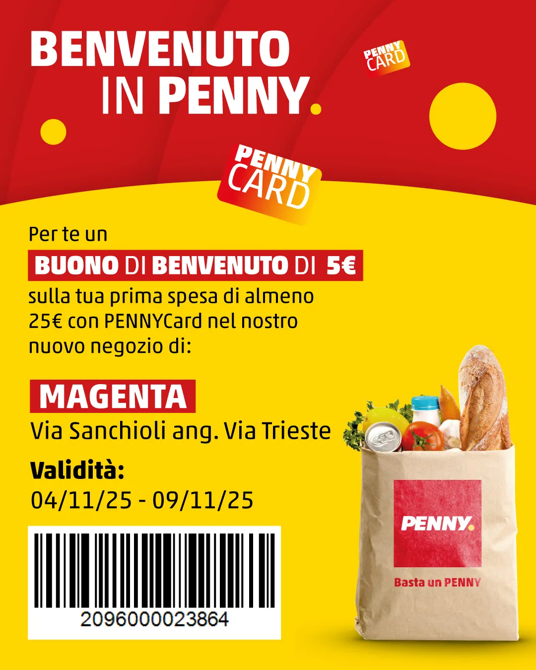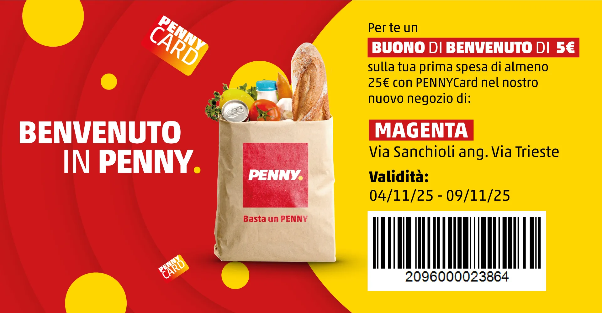 Il buono non è cumulabile con altri buoni sconto, non dà diritto a resto. Il buono è utilizzabile con PENNYCard solo nel negozio indicato. E’ possibile utilizzare 1 solo buono per PENNYCard.