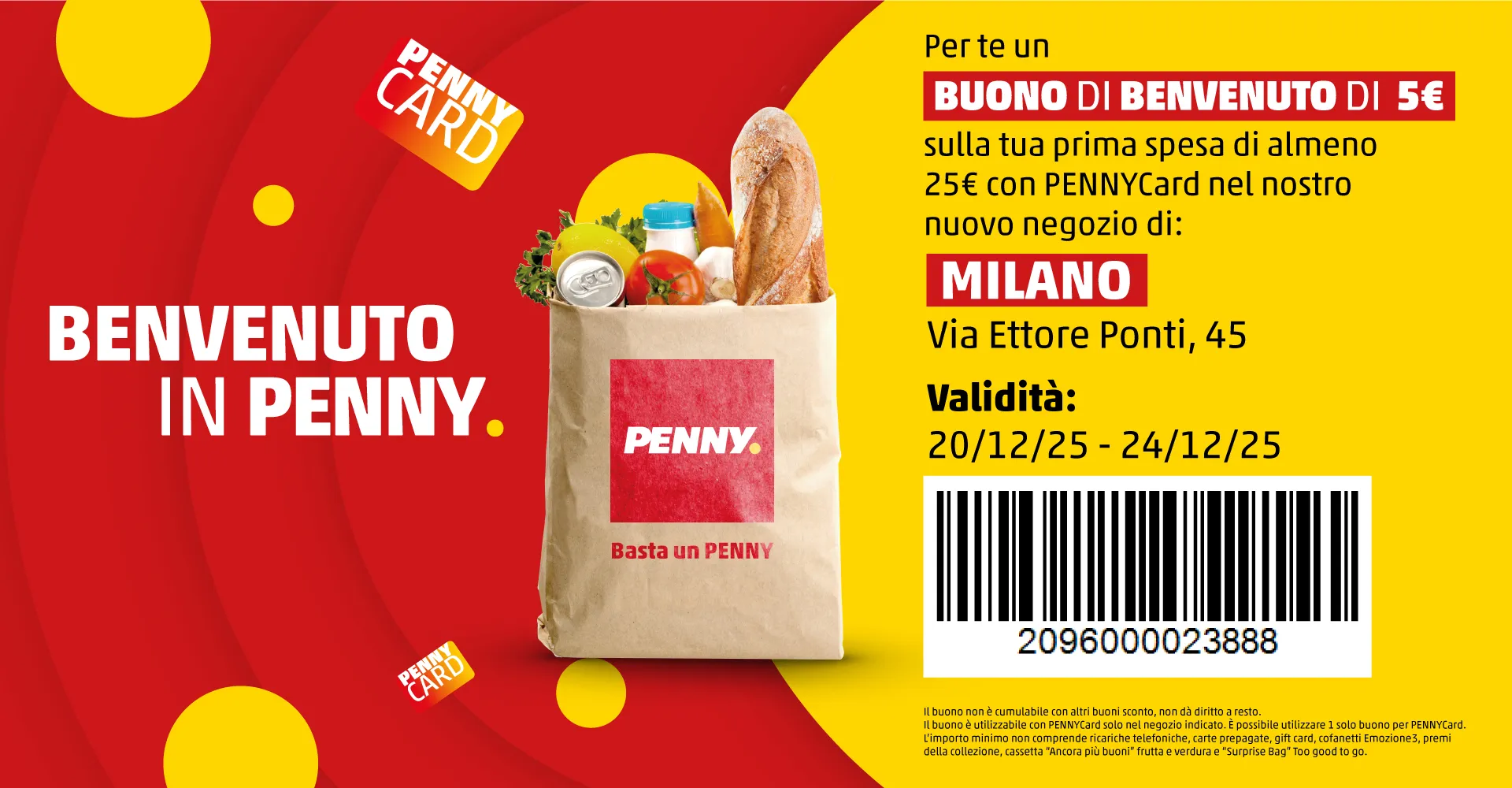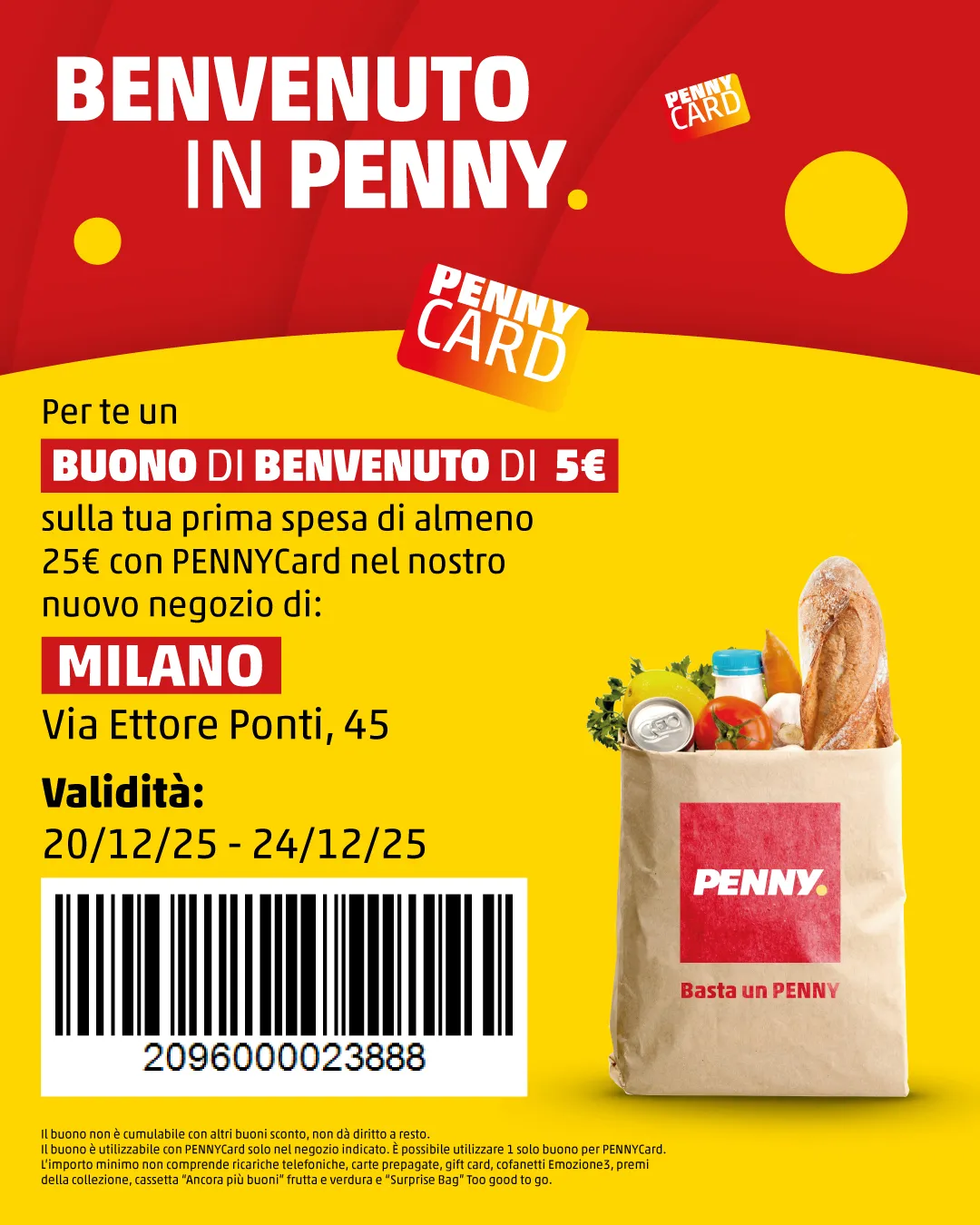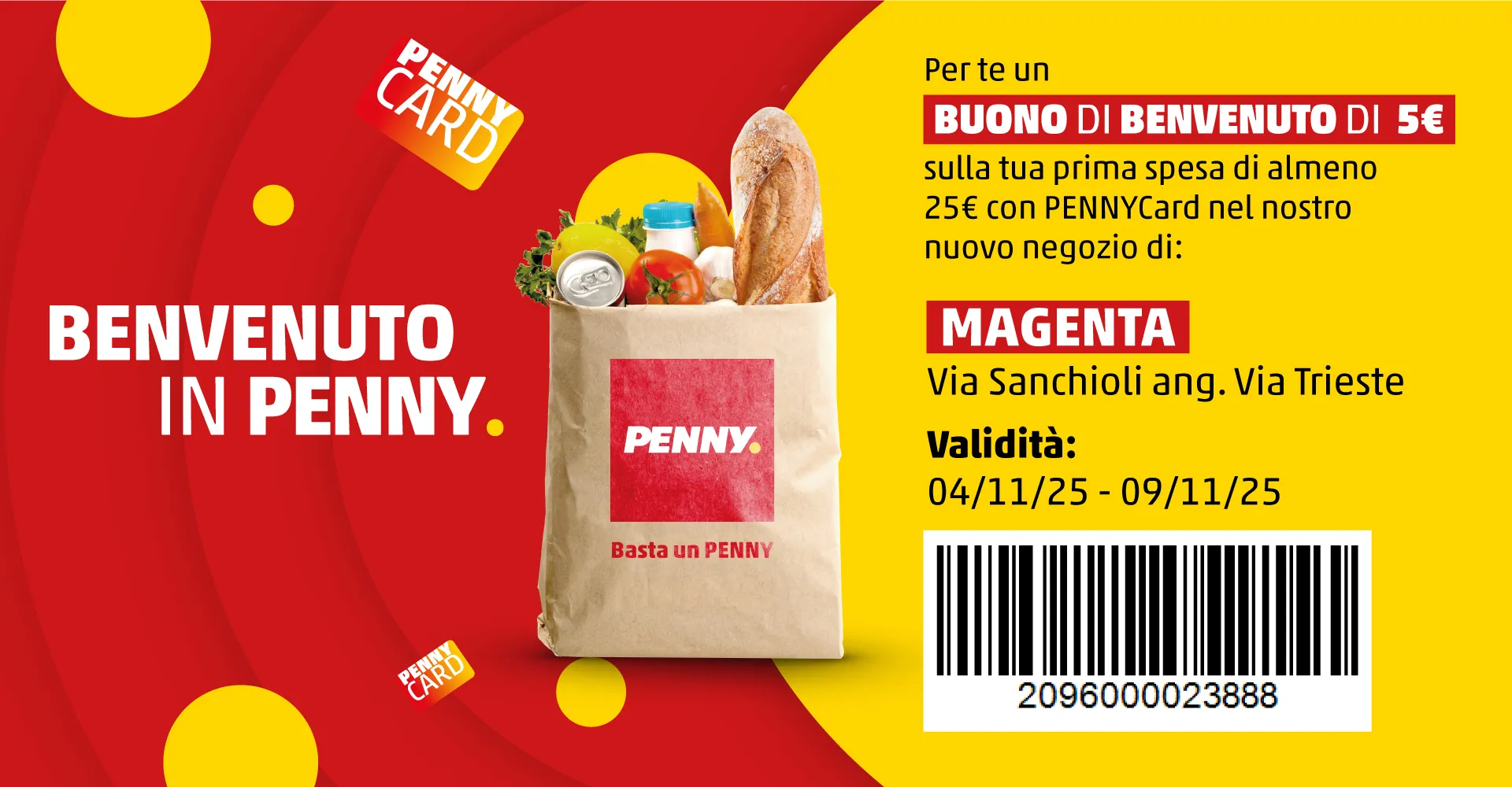 Il buono non è cumulabile con altri buoni sconto, non dà diritto a resto. Il buono è utilizzabile con PENNYCard solo nel negozio indicato. E’ possibile utilizzare 1 solo buono per PENNYCard.