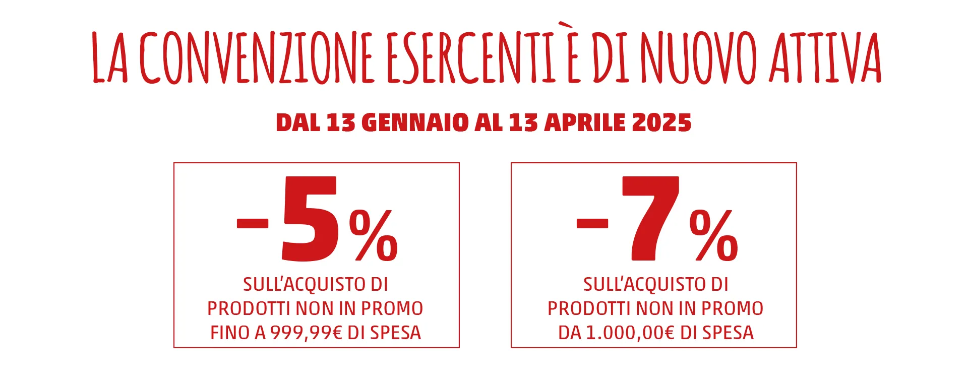 Lo sconto è valido dal 13 gennaio al 13 aprile 2025 solo per acquisti effettuati con la PENNYCard sulla quale è stata attivata la convenzione. Sono esclusi dalla convenzione i prodotti in promozione, le ricariche telefoniche, le giftcard, le carte prepagate, i cofanetti Emozione3, i premi della collezione, le cassette “Ancora più buoni” frutta e verdura e le “Magic Box” Too good to go.
