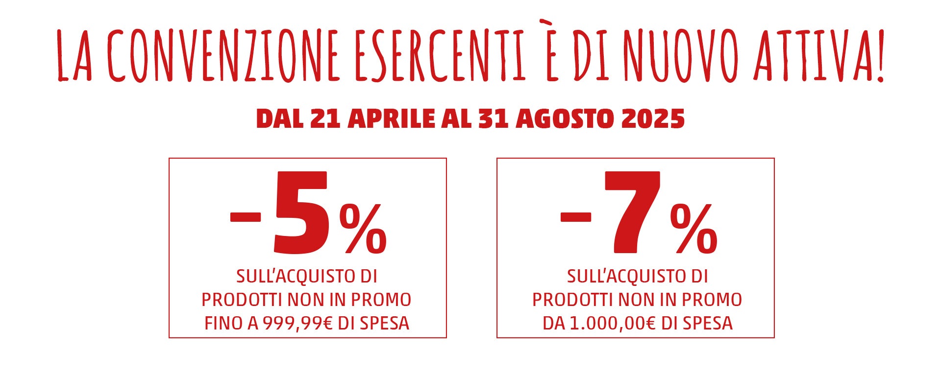 Lo sconto è valido dal 21 aprile al 31 agosto 2025 solo per acquisti effettuati con la PENNYCard sulla quale è stata attivata la convenzione. Sono esclusi dalla convenzione i prodotti in promozione, le ricariche telefoniche, le giftcard, le carte prepagate, i cofanetti Emozione3, i premi della collezione, le cassette “Ancora più buoni” frutta e verdura e le Surprise bag Too good to go.
