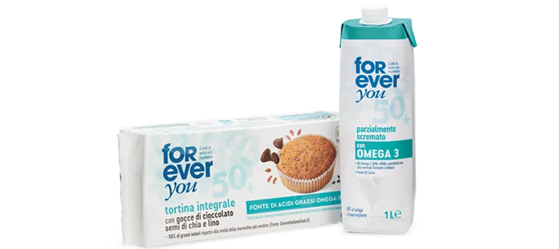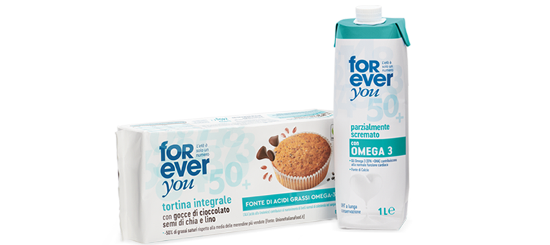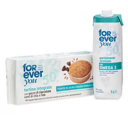 Li trovi nella Tortina integrale con gocce di cioccolato, semi di chia e lino e nel Latte parzialmente scremato.
