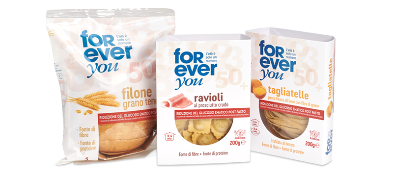 Li trovi nei Ravioli al prosciutto crudo, nelle Tagliatelle pasta fresca all'uovo con fibra di grano e nel Filone grano tenero.