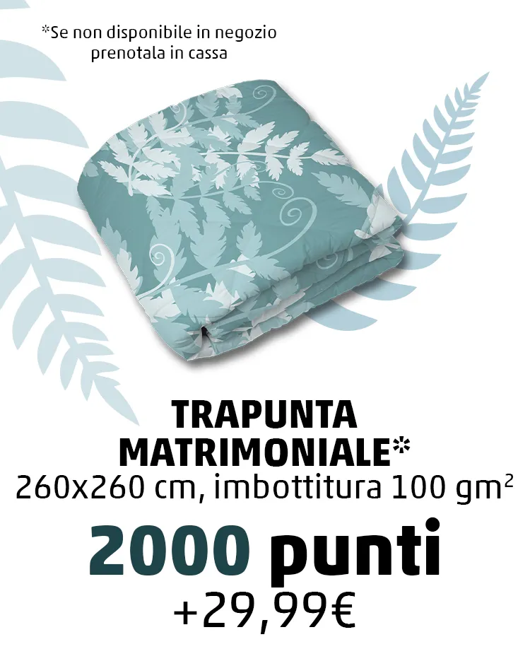 240x240 cm e una comoda trapunta matrimoniale 260x260. E per le serate più