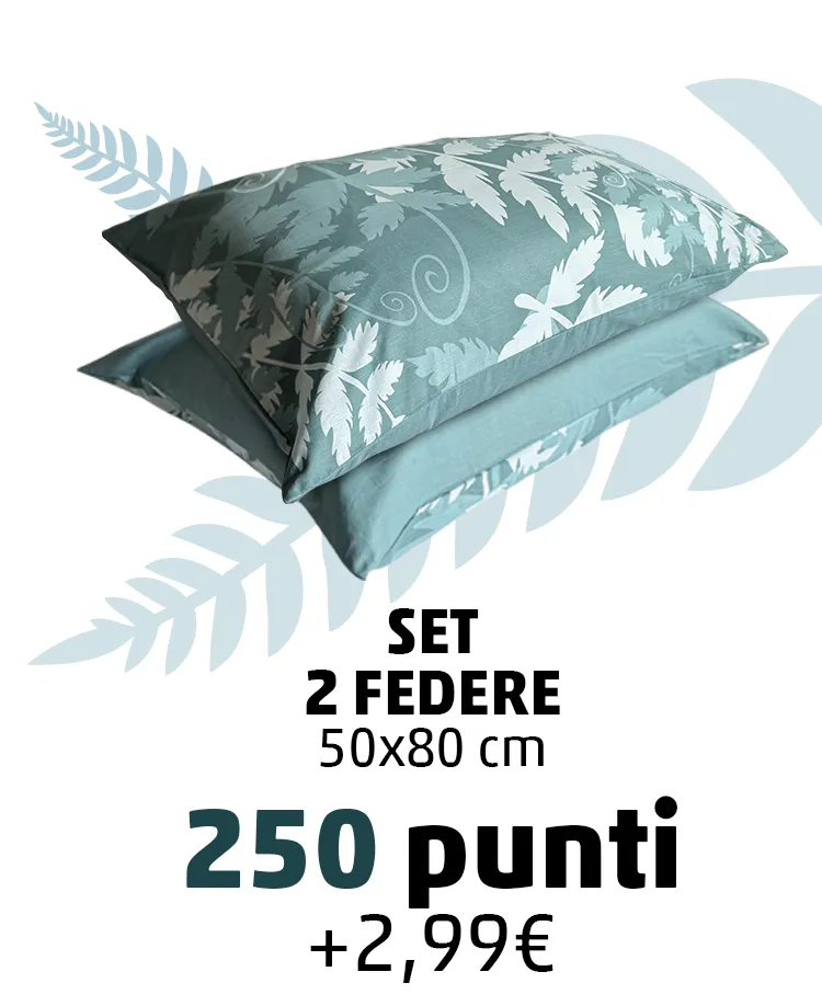 due federe 50x80 cm, un lenzuolo matrimoniale sopra 245x290 cm,