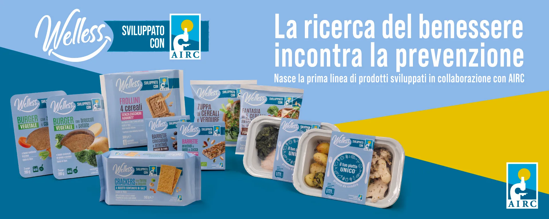 Le dodici referenze inserite nella linea Welless e contraddistinte dal logo AIRC, sono caratterizzate da ricette semplici e pochi ingredienti per contribuire a costruire un'alimentazione varia ed equilibrata. Adottare corrette abitudini alimentari, in linea con il modello della dieta mediterranea è infatti un importante passo per costruire uno stile di vita attento e consapevole.