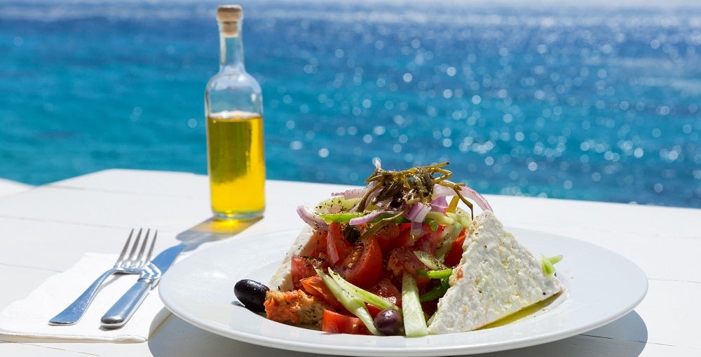 Tra le pietanze più conosciute c'è sicuramente la khoriatiki, la famosa insalata greca. Fresca e leggera, l'insalata greca è ideale come contorno, o come piatto unico. Per la sua realizzazione, è necessario scegliere ingredienti di ottima qualità, a cominciare dai pomodori, che devono essere rossi e ben maturi. Prendere dei cetrioli grandi e compatti al tatto ed una cipolla rigorosamente rossa, per il suo sapore più dolce e delicato. L'ingrediente principale di una perfetta insalata greca è, naturalmente, la feta, il formaggio tradizionale DOP di origine greca.