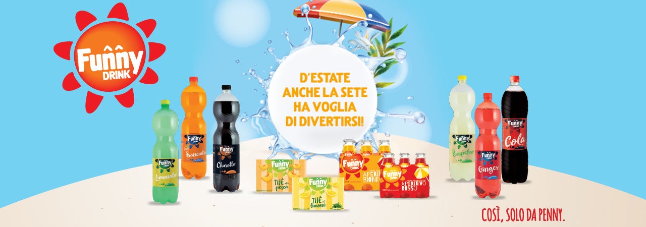 FUNNY DRINK è la linea dedicata al mondo delle bevande: per i tuoi momenti di divertimento in famiglia o con gli amici, durante un party o una cena ma anche solo per una pausa rigenerante siamo pronti ad offrirti i drink più freschi e gustosi, al miglior prezzo!