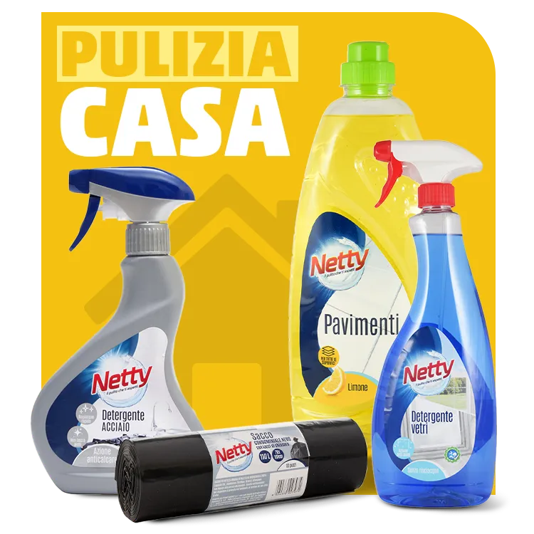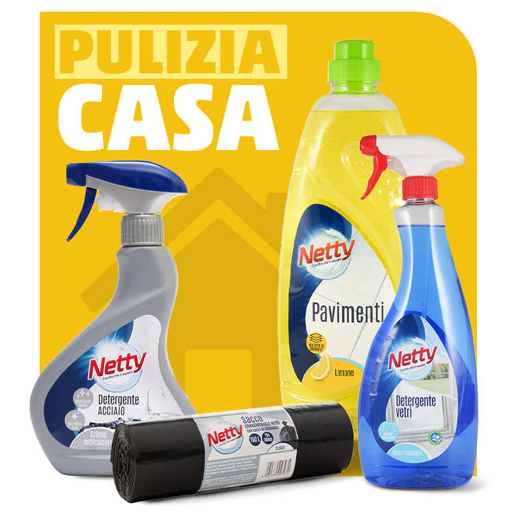 Prenditi cura della tua casa sempre in ordine e pronta ad accoglierti con un fresco profumo di pulito con i prodotti della linea NETTY.