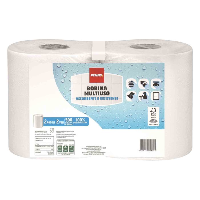 conf. da 2 rotoli, 2 veli- 500 strappi