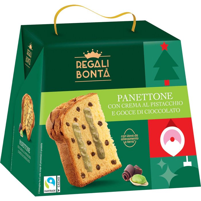 Panettone con crema al pistacchio e gocce di cioccolato